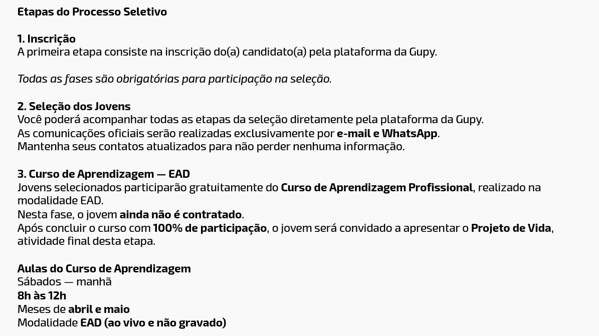 Descrição da vaga