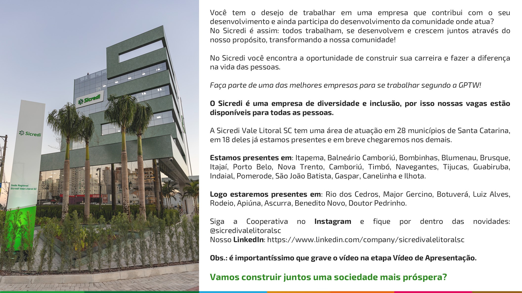 Seguimos buscando talentos que queiram fazer parte da construção de um mundo melhor e queremos contar com você. #VemSerSicredi!