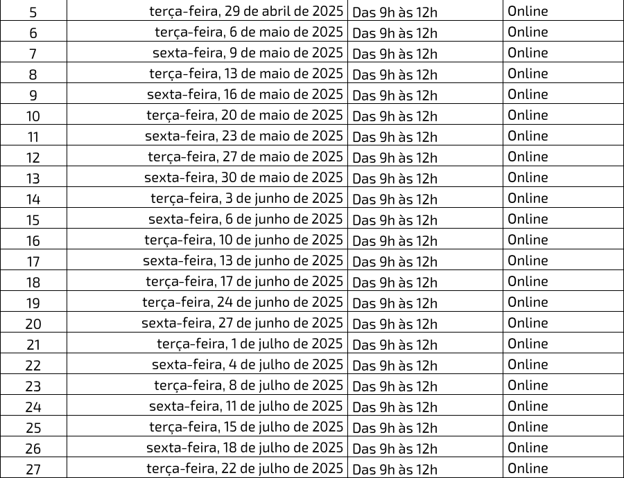 · As aulas serão online através do Teams duas vezes por semana das 9h às 12h (majoritariamente às terças e sextas);